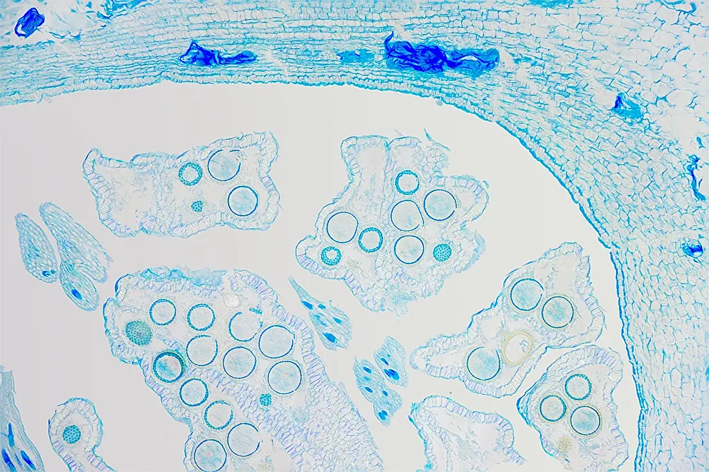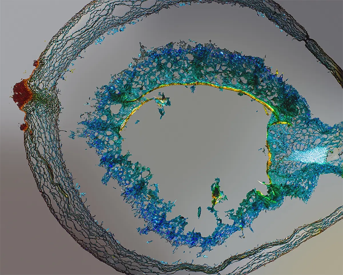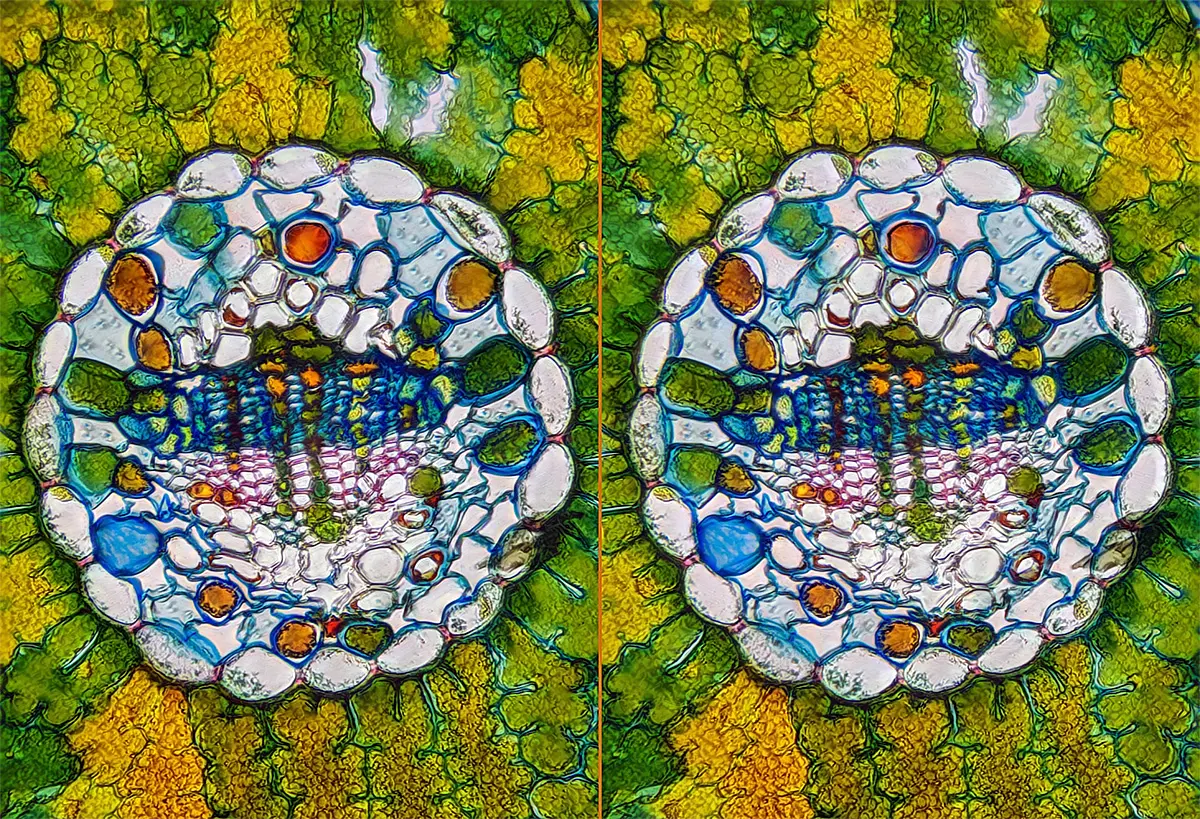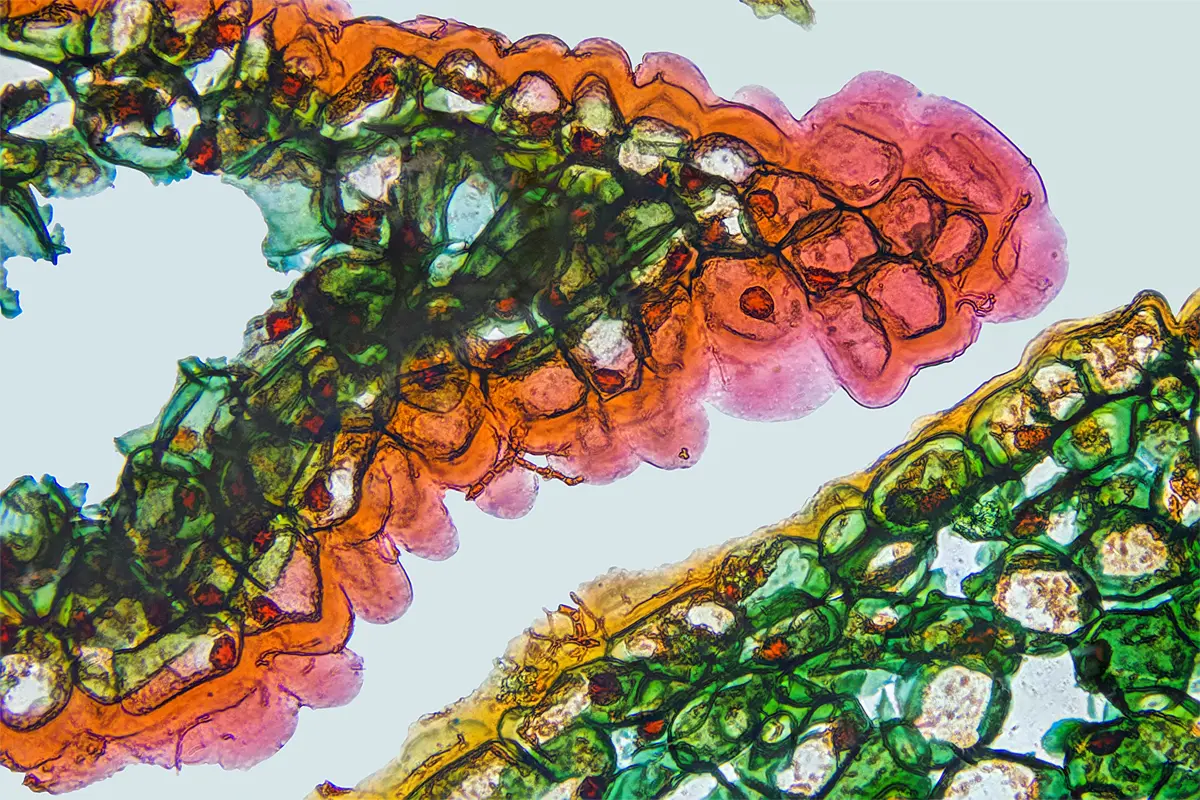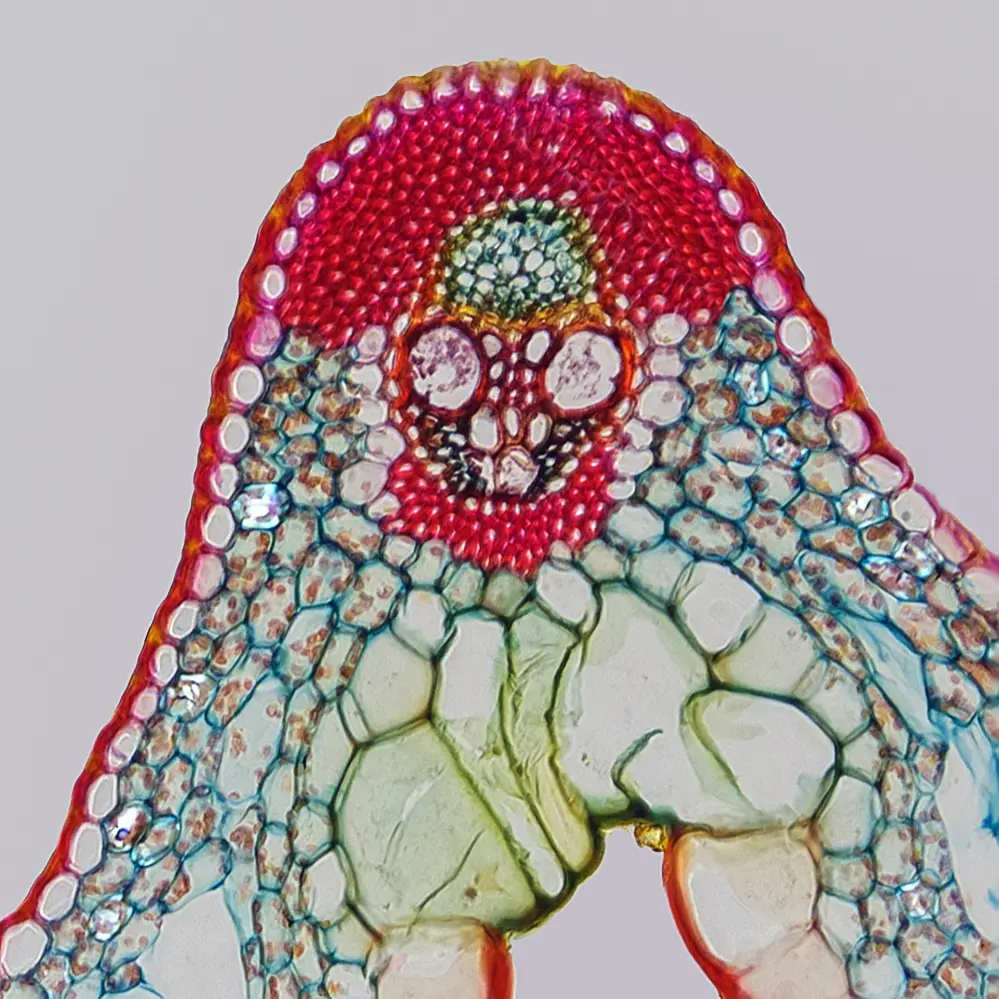 das ist ein 10 Mikrometer Querschnitt eines Blattes.